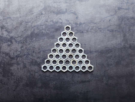 Triangle from screw nuts on metal texture background