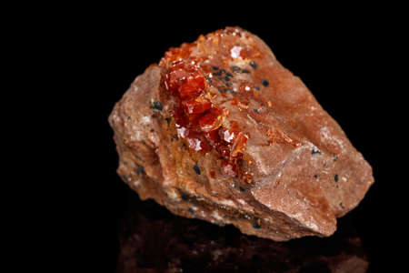 Macro mineral stone Vanadinite on a black background close up