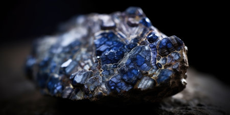 Macro mineral raw uncut blue sapphire crystal, close up, detail.