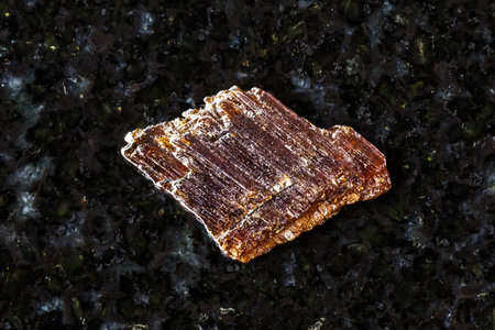 sample of raw rutile mineral on black granite background close up from Pakistan