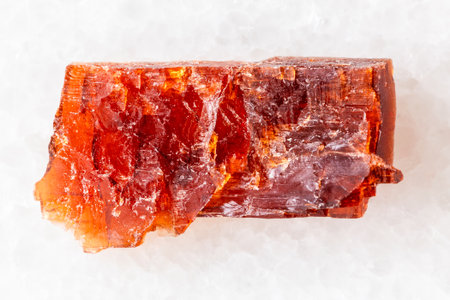 sample of rough eudialyte mineral on white marble background close up