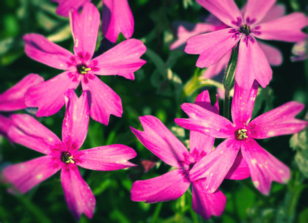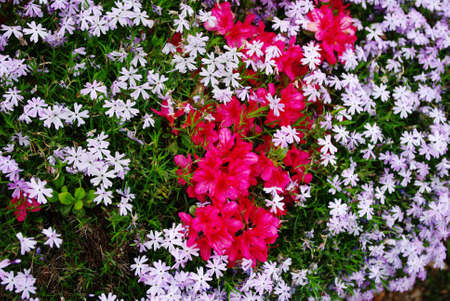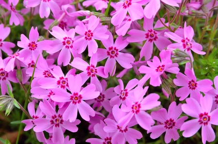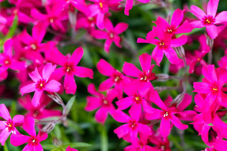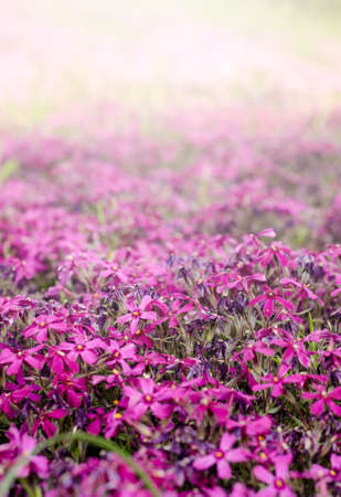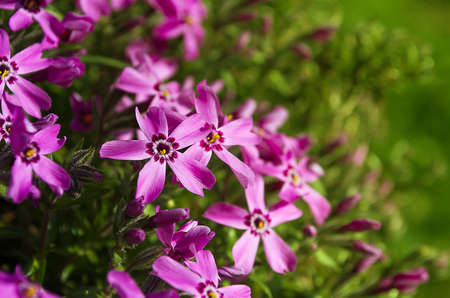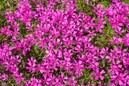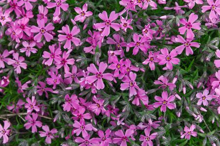 Pink Phlox subulata (Creeping Phlox) - creeping plant with small pink flowers to decorate flower beds. Floral background