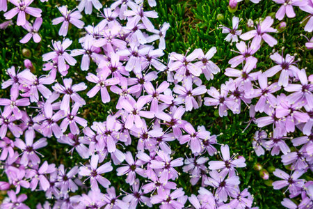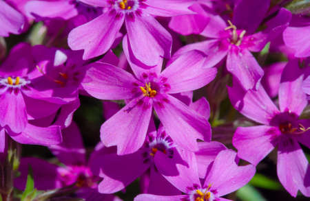 Purple phlox subulata. Floral background with subulata flowers. purple floral pattern. top view