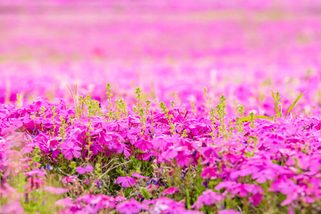Macro of pink moss or cherry blossom at shibazakura festival , Yamanashi, Kawaguchiko