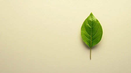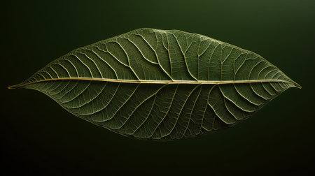A prominent leaf with intricate details sits on a textured green backdrop, creating a serene atmosphere ideal for organic and sustainable themes.