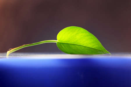 Close-up still life of a single green leaf