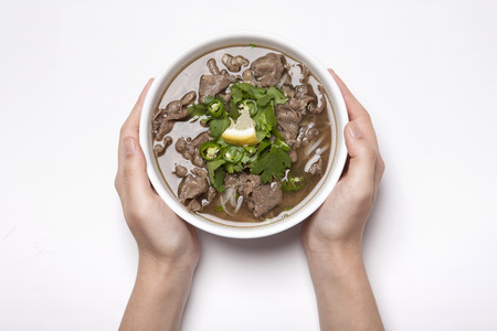 Pho bo soup on a white background studio shooting 3