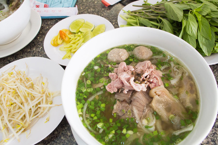 Vietnamese cuisine - Pho Bo soup with beef and noodle