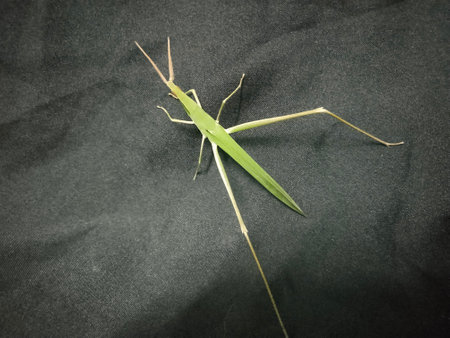 common stick grasshopper or Acrida ungarica (Acrididae) close up on black background. photo taken in malaysia