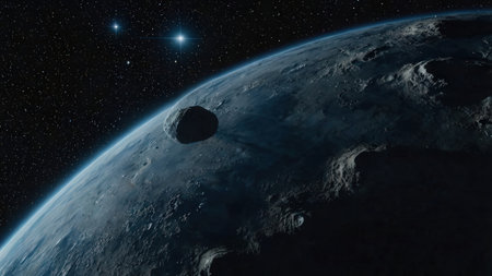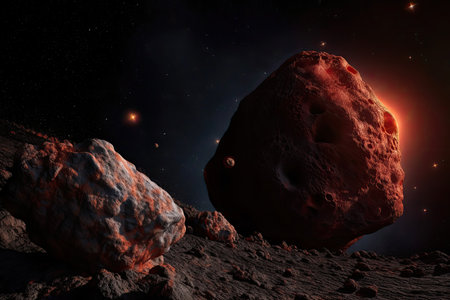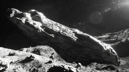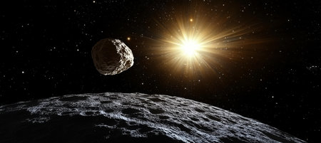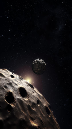 Dramatic View of a Dark Asteroid Illuminated by a Distant Star in the Vastness of Outer Space