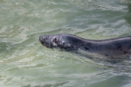 Close up of a grey seal (halichoerus grypus) swimming in the water
