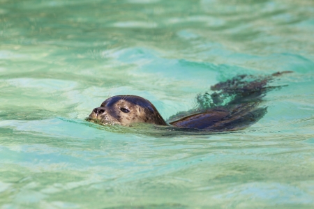 seal in the water, relaxing on a rock, animal in the nature sea habitat, Iceland