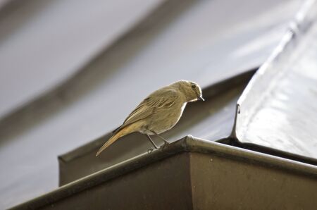 A female daurian redstart. A Muscicapidae migratory bird with white spots on its wings. Females have a grayish overall body color compared to the bright males.