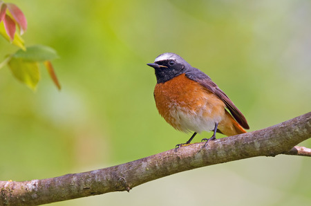 Perching male Common Redstart Phoenicurus phoenicurus. Moscow region, Russia