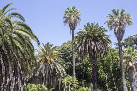 Arecaceae, Phoenix canariensis palm tree in Amalfi Coast at sunny sky, Italy