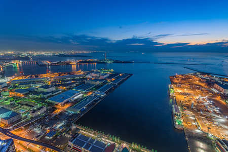 Port of Taichung, Taiwan. September, 24, 2020. Various night views of the port, piers, terminal and cityline of the Port Taichung.