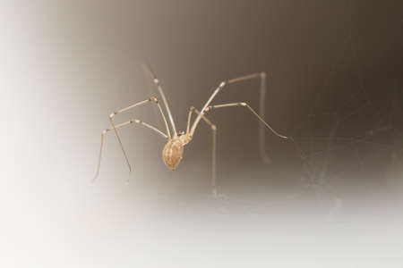 Close-up image of a daddy long legs spider (Pholcus phalangioides) on spider web.