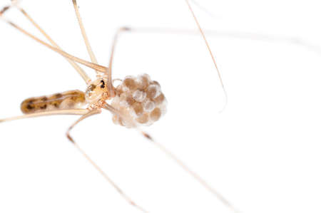 Macro Photography of Daddy Long-Legs Spider with Eggs Isolated on Background