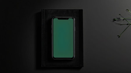 Elegant smartphone on a dark textured fabric background, showcasing modern technology and minimalistic design, perfect for lifestyle and product photography