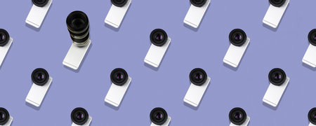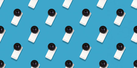 Seamless flat pattern, smartphone with a big camera from a DSLR, minimal concept, banner abstract trendy photo