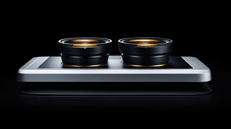Closeup smartphone camera with double lenses on a black background