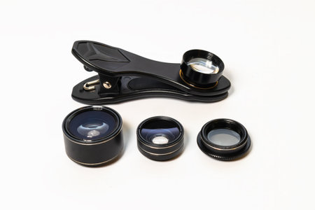 Fish eye lens set for smartphone white background.