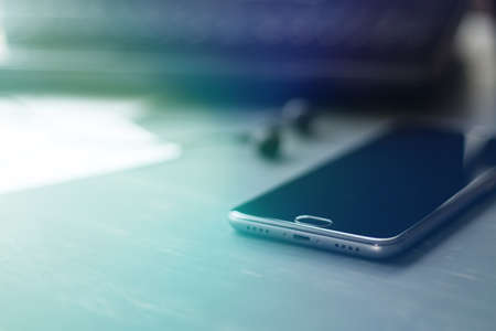 modern smartphone in the background of office table.