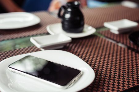 forget smartphone on a cafe table , lost smart phone