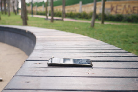 Modern cellphone on a bench, lost smart phone concept