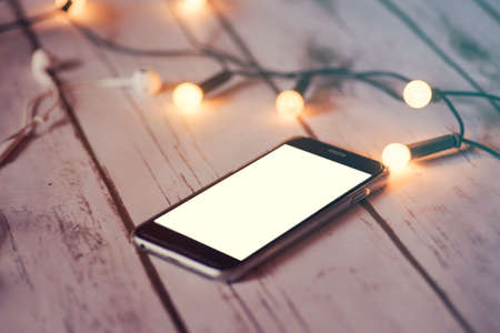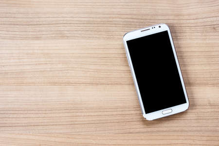 Blank screen smartphone on wooden table