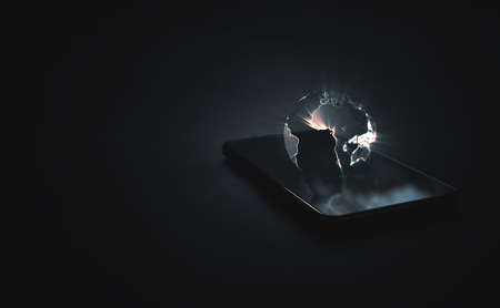 Earth hologram above smartphone screen