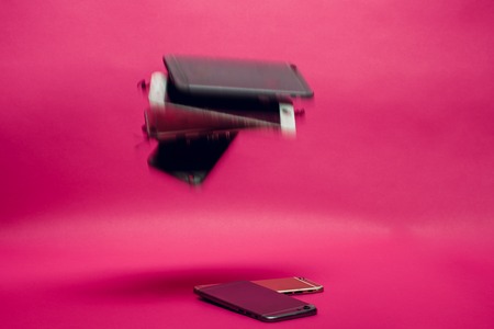 Modern Smartphone Communications: A Pile of Used Mobile Devices on a White Background, Illustrative Concept of Digital Waste