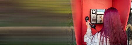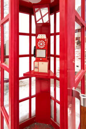 Old Red City Phone Booth Analog Phone with Dial and Big Handset