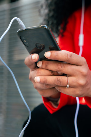 A selective focus shot of a male hand using his phone