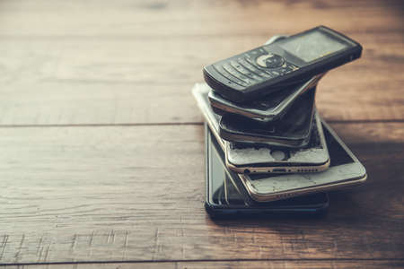 outdated and modern models of smartphones and mobile phones. dirty, broken and old smartphone backgrounds