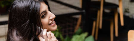 Close up of a cheerful lady in a good mood communicating by her cellphone on blurred outdoor background