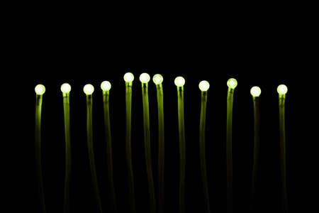 Set of glowing vintage guitar amplifier vacuum electron tubes