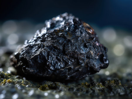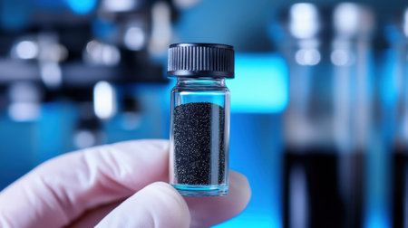 A detailed view of a black powder pile on a blue background, ideal for showcasing textures and creating unique art or craft projects.