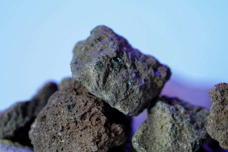 Bog iron ore, raw rock on black background, mining and geology, extraction and industrial