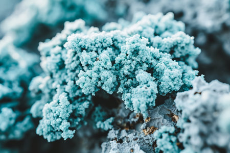 Close-up of a turquoise rock with rugged texture contrasted against a mint backdrop, ideal for geological projects or color palette inspiration.