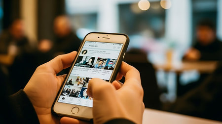 Stay connected with a sleek modern smartphone showcasing a vibrant content feed for social media engagement