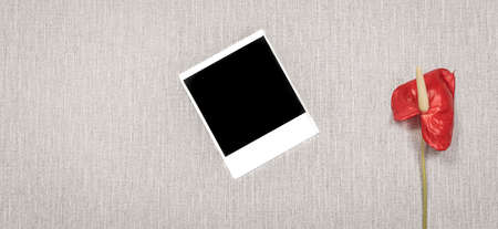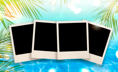 Colorful flat surface features scattered white polaroid frames arranged with open space for personal memories and creative expression in a fun setting.