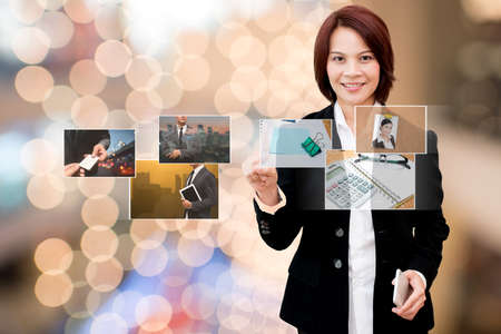 Business people in corporate staff meeting with envisional graphic . Concept of digital technology for marketing data analysis and investment decision making .