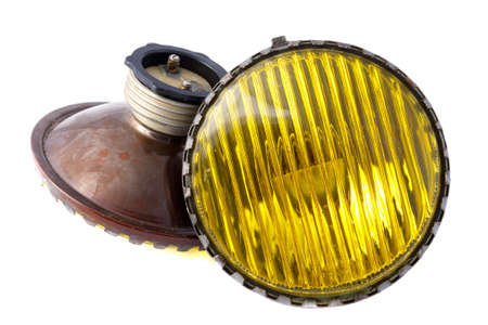 Yellow Car fog lights on white background