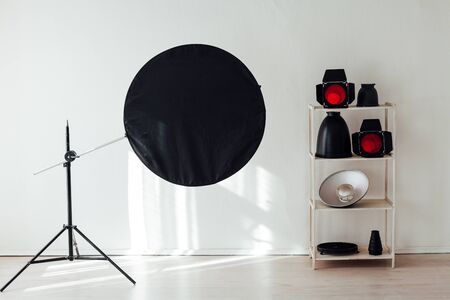 Photo studio accessories flashes white background