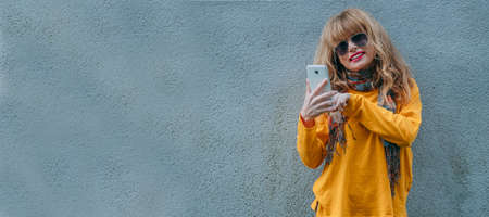 mobile photography and selfie trend. young stylish girl taking photoof herself using smartphone. social media bloggers lifestyle.
