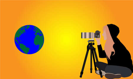 Vector illustration, woman photographing the earth, perfect for world photographers day