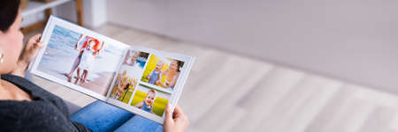 Woman Looking At Photo Album Or Photobook
