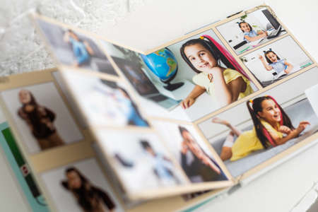 photobook of a little girl. Family, childhood and leisure concept