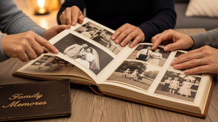 Looking Look At Family Photo Album. Memory Book